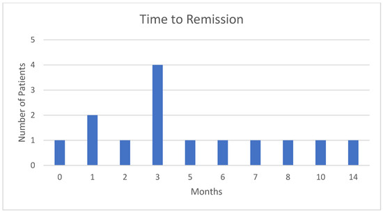 Time to AHA remission. Most patients (10/14) with remission achieved it in a period of up to 6 months from diagnosis.