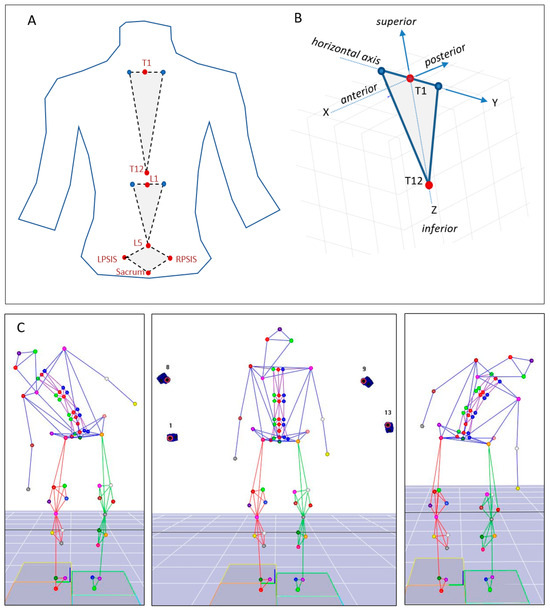 - Mörl, F.; Blickhan, R. Three-dimensional relation of skin markers to lumbar vertebrae of healthy subjects in different postures measured by open MRI. Eur. Spine J. 2006, 15, 742–751. [Google Scholar] [CrossRef]