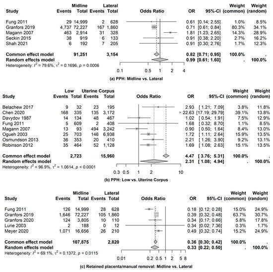 Additionally, although most studies utilized ultrasonography to identify the placental location, some of the older studies utilized different techniques, such as manual evaluation following delivery or “placentography” (radiographic technique). These studies were also included in our analysis. This was performed since our objective was not about how the placenta locations were agreed upon but the correlation of the locations (used at the time of the study) to pregnancy complications. The criteria for study inclusion were set prior to literature review and between-study heterogeneity was accounted for using a random-effects model to reduce study heterogenicity. One final limitation was the fact that all data are from observational studies (case-control, cohort) rather than randomized controlled studies.
