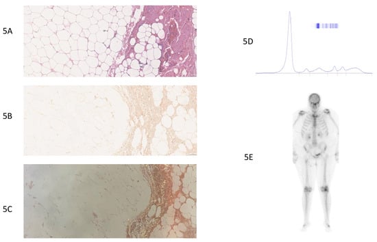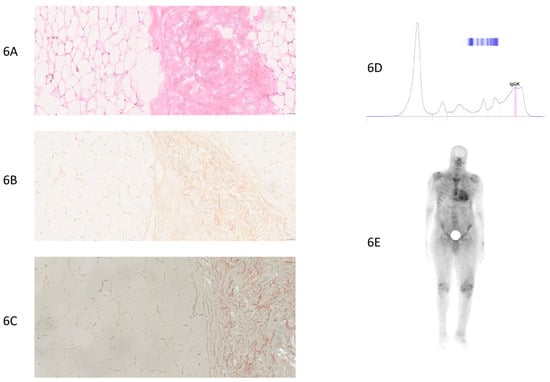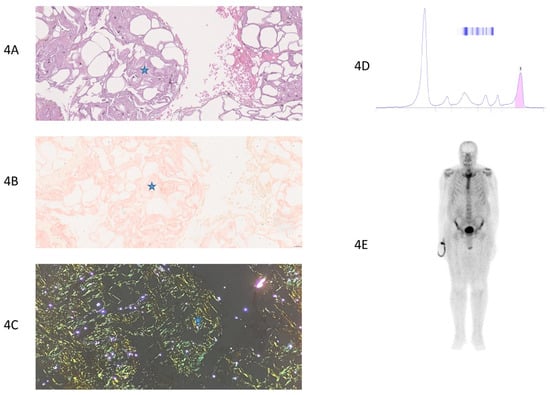 - Rezk, T.; Gilbertson, J.A.; Mangione, P.P.; Rowczenio, D.; Rendell, N.B.; Canetti, D.; Lachmann, H.J.; Wechalekar, A.D.; Bass, P.; Hawkins, P.N.; et al. The Complementary Role of Histology and Proteomics for Diagnosis and Typing of Systemic Amyloidosis. J. Pathol. CR 2019, 5, 145–153. [Google Scholar] [CrossRef]