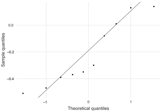 The absolute mean difference between TLFD_US and the speed ground truth was 0.215 mm, 95% CI [−0.410, −0.035]. As shown in the Q–Q plot, sample quantiles follow the theoretical quantiles and only deviate in a small range (Figure 6). Descriptive data for this analysis are shown in Table 1.