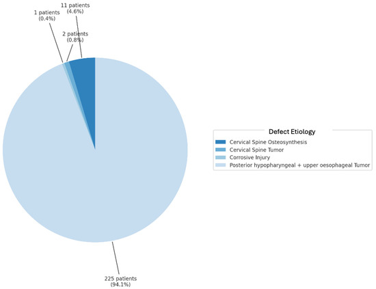 Beyond oncologic cases, defects in the posterior hypopharynx and upper esophagus can also arise from complications of Zenker’s diverticulum surgery, cervical spine instrumentation, or radiation-induced necrosis [7,8]. Postoperative dehiscence in these cases can lead to severe complications, including mediastinitis and chronic aspiration. Therefore, reconstruction strategies must aim not only to restore anatomical integrity but also to ensure functional outcomes such as swallowing and phonation while minimizing donor site morbidity [9].