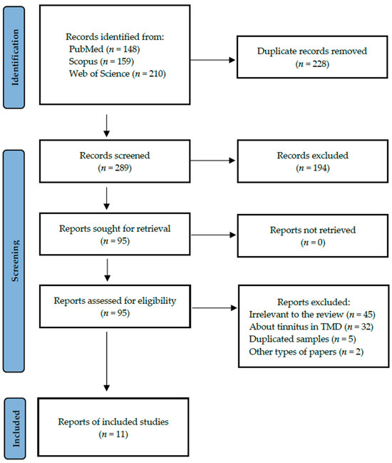 When patients report otological symptoms, audiological diagnostics should be considered in order to assess the functioning of the auditory pathway, from the peripheral organ to the auditory centres located in the central nervous system. Moreover, neurological, cardiological, and psychiatric consultations are also recommended. Our systematic review aimed to evaluate the co-occurrence of TMDs in patients diagnosed with tinnitus.