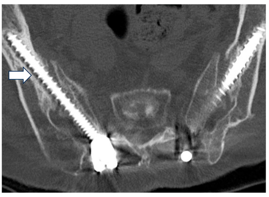 19. O’Shaughnessy, B.A.; Lenke, L.G.; Bridwell, K.H.; Cho, W.; Zebala, L.P.; Chang, M.S.; Auerbach, J.D.; Crawford, C.H.; Koester, L.A. Should symptomatic iliac screws be electively removed in adult spinal deformity patients fused to sacrum? Spine (Phila Pa 1976) 2012, 37, 1175–1181. [Google Scholar] [CrossRef]