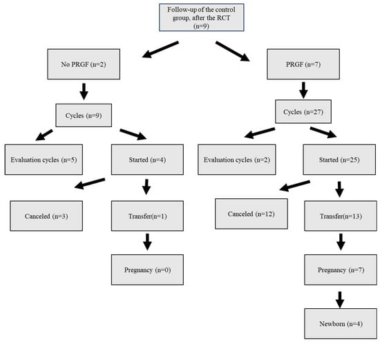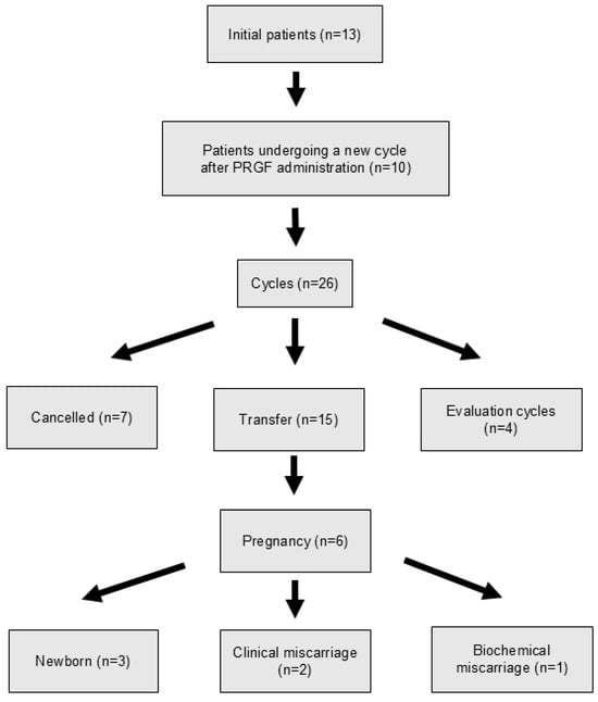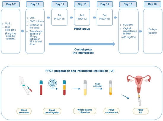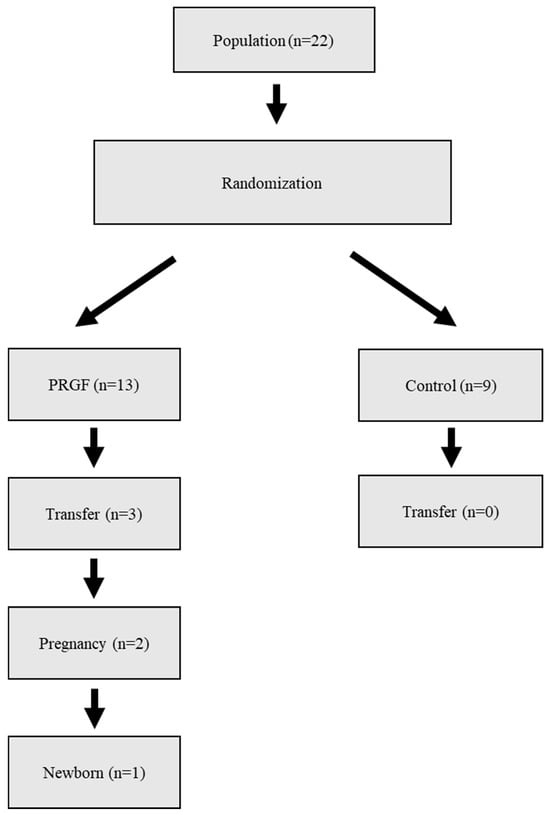 - Agirregoikoa, J.A.; de Pablo, J.L.; de la Fuente, M.; Anitua, E. Potential of Plasma Rich in Growth Factors (PRGF-Endoret) to Enhance the Efficacy of Assisted Reproductive Techniques in Refractory Cases. Cureus 2022, 14, e26623. [Google Scholar] [CrossRef]
