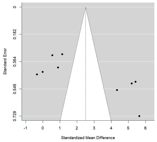 However, in order to account for the variabilities in the study designs, a heterogeneity analysis was performed. This included the calculation of an I2 index of heterogeneity and Cochran’s Q test, both revealing the presence of high heterogeneity, implying limitations of considerable variability among the studies investigated. Moreover, to assess the potential for publication bias, a funnel graph was prepared, and Egger’s test was applied to contrast this hypothesis. The significance level used in the analyses was 5% (α = 0.05). The software used to conduct this meta-analysis was the metafor package from R 4.3.1 (R Core Team (2018)). R: A language and environment for statistical computing. R Foundation for Statistical Computing, Vienna, Austria. URL: http://www.R-project.org/).
