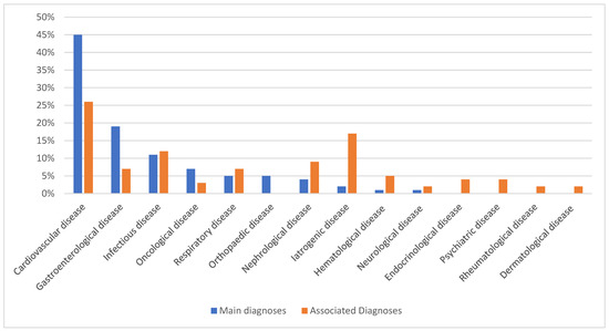 Distribution of the 100 most frequent main diagnoses and associated diagnoses in intensive care units.
