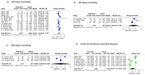 Chicago/Turabian StyleJiménez Franco, Daniel Arturo, Camilo Andrés Pérez Velásquez, and David Rene Rodríguez Lima. 2025. "Mortality in Critically Ill Patients with Liberal Versus Restrictive Transfusion Thresholds: A Systematic Review and Meta-Analysis of Randomized Controlled Trials with Trial Sequential Analysis" Journal of Clinical Medicine 14, no. 6: 2049. https://doi.org/10.3390/jcm14062049