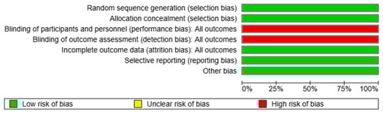 - Sterne, J.A.C.; Savović, J.; Page, M.J.; Elbers, R.G.; Blencowe, N.S.; Boutron, I.; Cates, C.J.; Cheng, H.Y.; Corbett, M.S.; Eldridge, S.M.; et al. RoB 2: A revised tool for assessing risk of bias in randomised trials. BMJ 2019, 366, l4898. [Google Scholar] [CrossRef] [PubMed]