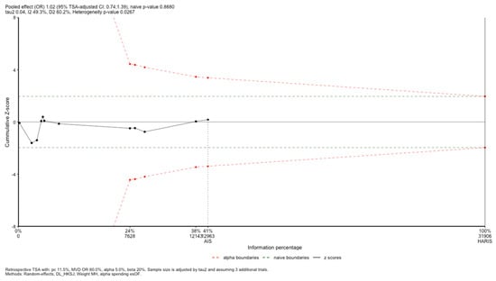 - Riberholt, C.G.; Olsen, M.H.; Milan, J.B.; Hafliðadóttir, S.H.; Svanholm, J.H.; Pedersen, E.B.; Lew, C.C.H.; Asante, M.A.; Ribeiro, J.P.; Wagner, V.; et al. Major mistakes or errors in the use of trial sequential analysis in systematic reviews or meta-analyses—The METSA systematic review. BMC Med. Res. Methodol. 2024, 24, 196. [Google Scholar] [CrossRef]