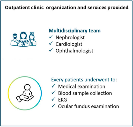 Carollo, C.; Evola, S.; Sorce, A.; Cirafici, E.; Bennici, M.; Mulè, G.; Geraci, G. Mission and One-Year Experience of a Kidney–Heart Outpatient Service: A Patient-Centered Management Model. J. Clin. Med. 2025, 14, 2102. https://doi.org/10.3390/jcm14062102