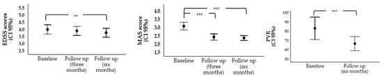 | EDSS | 3.99 | 1.30 | 3.89 | 1.26 | 3.77 | 1.23 | 4.92 | 0.009 | 0.14 |