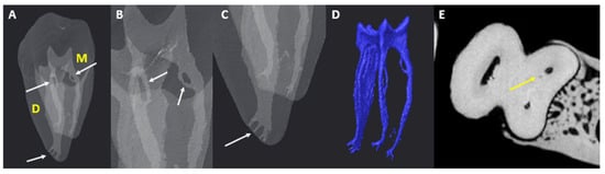 - Fan, B.; Pan, Y.; Gao, Y.; Fang, F.; Wu, Q.; Gutmann, J.L. Three-Dimensional Morphologic Analysis of Isthmuses in the Mesial Roots of Mandibular Molars. J. Endod. 2010, 36, 1866–1869. [Google Scholar] [CrossRef] [PubMed]
