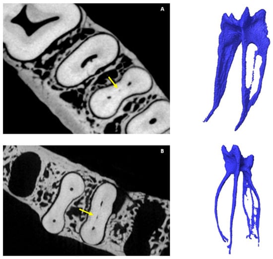 - Harris, S.P.; Bowles, W.R.; Fok, A.; McClanahan, S.B. An Anatomic Investigation of the Mandibular First Molar Using Micro–Computed Tomography. J. Endod. 2013, 39, 1374–1378. [Google Scholar] [CrossRef] [PubMed]