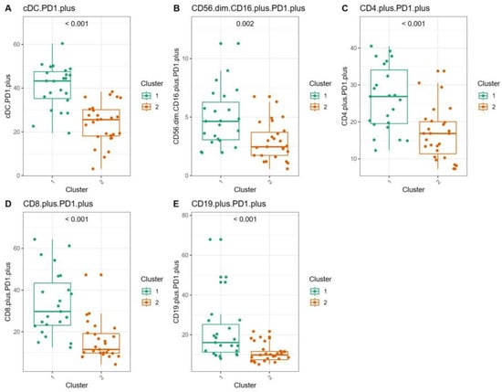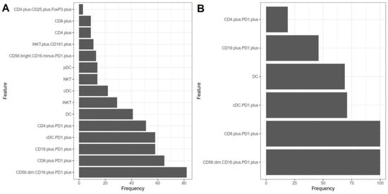 - Kwaśnik, P.; Zaleska, J.; Link-Lenczowska, D.; Zawada, M.; Wysogląd, H.; Ochrem, B.; Bober, G.; Wasilewska, E.; Hus, I.; Szarejko, M.; et al. High Level of CD8+PD-1+ Cells in Patients with Chronic Myeloid Leukemia Who Experienced Loss of MMR after Imatinib Discontinuation. Cells 2024, 13, 723. [Google Scholar] [CrossRef]