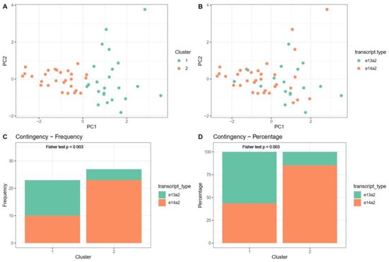 3.4. Distinguishing Groups of Patients with e14a2 or e13a2 Transcripts Based on Their Principal Component Analysis Results