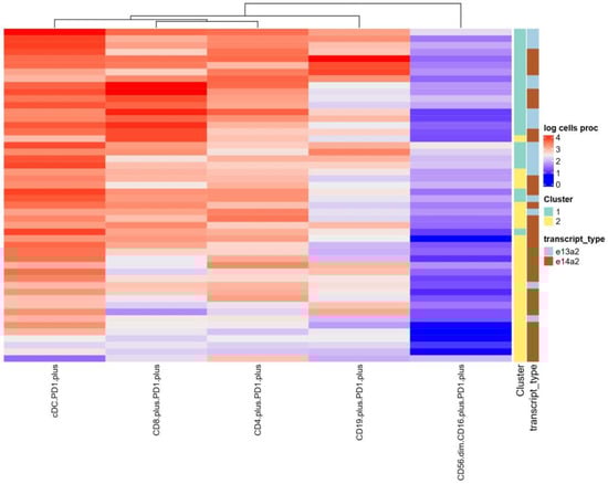 - Huuhtanen, J.; Adnan-Awad, S.; Theodoropoulos, J.; Forstén, S.; Warfvinge, R.; Dufva, O.; Bouhlal, J.; Dhapola, P.; Duàn, H.; Laajala, E.; et al. Single-Cell Analysis of Immune Recognition in Chronic Myeloid Leukemia Patients Following Tyrosine Kinase Inhibitor Discontinuation. Leukemia 2024, 38, 109–125. [Google Scholar] [CrossRef]