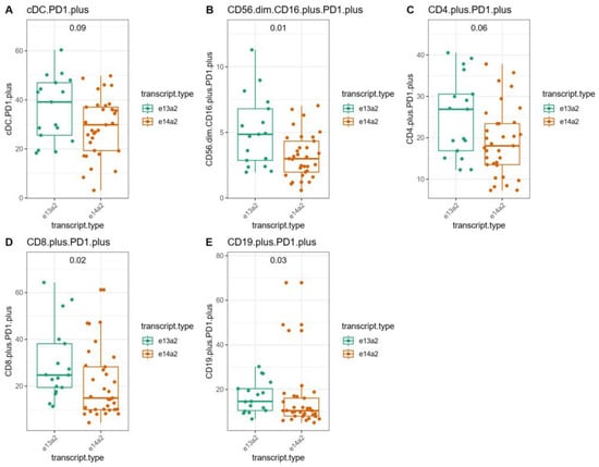 3.5. Immunological Characteristics of CML Patients with the e13a2 or e14a2 Transcripts After Imatinib Discontinuation