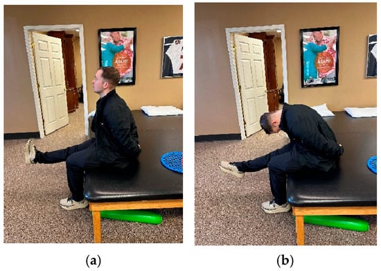 (a) Slump sliders (cervical extension coupled with ankle dorsiflexion). (b) Slump sliders (cervical flexion coupled with ankle plantarflexion).