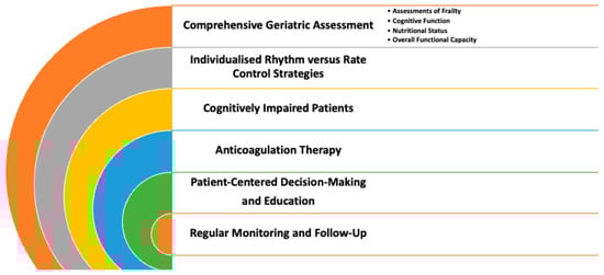 Current guidelines advocate for an integrated patient-centred approach to AF management in elderly populations [6]. This strategy not only involves effective arrhythmia control but also emphasizes optimizing anticoagulation therapy to prevent thromboembolic events. Tailoring interventions according to each patient’s life expectancy, functional status, and overall health is paramount [30].