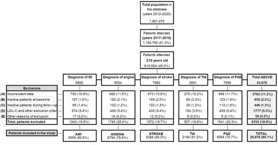 - Barrios, V.; Castellanos, M.; Campuzano Ruiz, R.; Gómez Cerezo, J.F.; Egocheaga Cabello, I.; Gámez, J.M.; Martínez López, I.; Mostaza, J.M.; Morant Talamante, N.; Parrondo, J.; et al. Treatment patterns and use of healthcare resources of patients with atherosclerotic cardiovascular disease and hypercholesterolemia and patients with familial hypercholesterolemia in Spain: Protocol of the Reality study. Front. Cardiovasc. Med. 2022, 2151, 966049. [Google Scholar] [CrossRef]