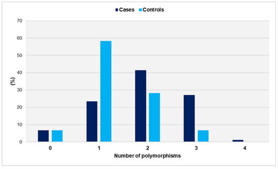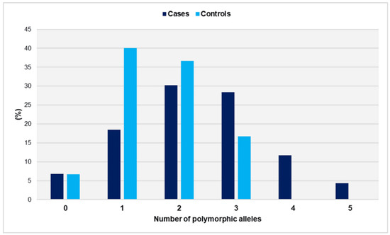The distribution of polymorphic alleles in cases and controls is depicted in Figure 3.