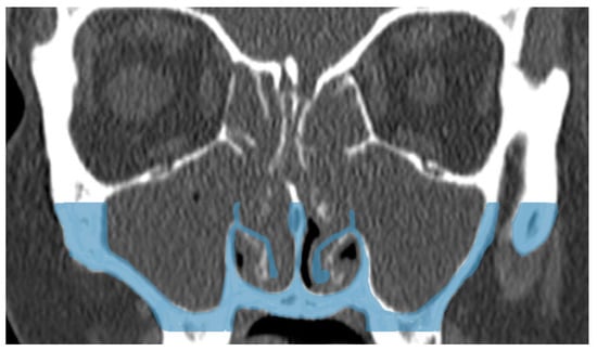 This retrospective study was conducted in the Department of Otolaryngology—Head and Neck Surgery, Western University, London, Canada. The study protocol was approved by the Institutional Review Board ethics committee (WREM 112530, 1 April 2022). Electronic medical records of adult patients (>18 years) who underwent revision endoscopic sinus surgery (ESS) following a previous ESS for chronic rhinosinusitis between 2010–2020 at our institution were reviewed. Surgeries were performed by two fellowship-trained surgeons BR and LS. Patients were included in the study if they met the following criteria: 1. Patients underwent an initial primary ESS due to chronic rhinosinusitis, with a documented bilateral ethmoidectomy (anterior and posterior ethmoidectomy) and radiofrequency turbinoplasty with bilateral outfracturing of the inferior turbinate. 2. Patients underwent an initial computed tomography (CT) scan prior to the initial primary ESS with our department (Pre-ESS CT) 3. Patients underwent a second CT scan that was performed prior to a revision surgery (post-ESS CT). Patients were excluded if ESS was performed due to benign or malignant tumors, odontogenic or unilateral CRS.