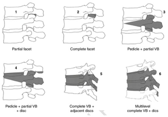 - Schwab, F.; Blondel, B.; Chay, E.; Demakakos, J.; Lenke, L.; Tropiano, P.; Ames, C.; Smith, J.S.; Shaffrey, C.I.; Glassman, S.; et al. The Comprehensive Anatomical Spinal Osteotomy Classification. Neurosurgery 2014, 74, 112–120; discussion 120. [Google Scholar] [CrossRef]
