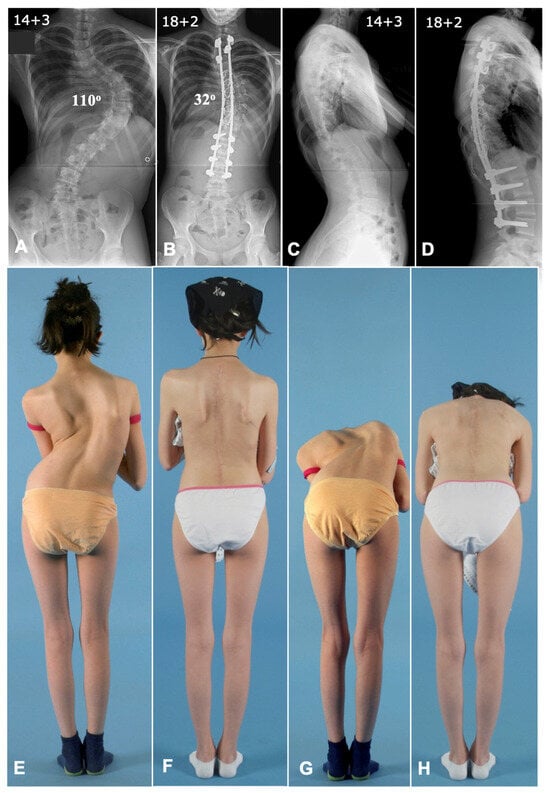 - Liljenqvist, U.R.; Link, T.M.; Halm, H.F.H. Morphometric Analysis of Thoracic and Lumbar Vertebrae in Idiopathic Scoliosis. Spine 2000, 25, 1247. [Google Scholar] [CrossRef] [PubMed]
