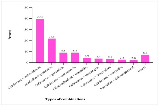 - Pauwels, I.; Versporten, A.; Drapier, N.; Vlieghe, E.; Goossens, H.; Global-PPS Network. Hospital antibiotic prescribing patterns in adult patients according to the WHO Access, Watch and Reserve classification (AWaRe): Results from a worldwide point prevalence survey in 69 countries. J. Antimicrob. Chemother. 2021, 76, 1614–1624. [Google Scholar]