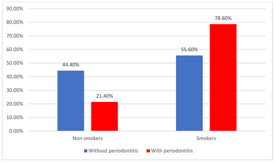 - Khan, S.; Khalid, T.; Awan, K.H. Chronic periodontitis and smoking. Prevalence and dose-response relationship. Saudi Med. J. 2016, 37, 889–894. [Google Scholar] [CrossRef] [PubMed] [PubMed Central]