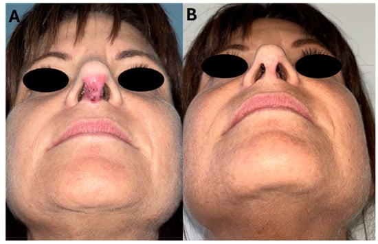 - Kim, J.B.; Lee, J.W.; Choi, K.Y.; Yang, J.D.; Cho, B.C.; Lee, S.J.; Kim, Y.S.; Lee, J.M.; Huh, S.; Chung, H.Y. Clinical Characteristics of Arteriovenous Malformations of the Head and Neck. Dermatol. Surg. 2017, 43, 526–533. [Google Scholar] [CrossRef] [PubMed]