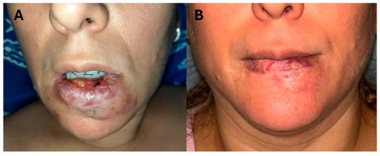 Currently, no universally accepted treatment guidelines exist for AVMs, and their management remains an area of active investigation. A multidisciplinary approach is essential, involving maxillofacial surgeons, interventional radiologists, anesthesiologists, and geneticists to develop personalized treatment plans that incorporate emerging therapeutic options and technologies []. A wide range of therapeutic strategies have been described in the literature. Early techniques, such as simple arterial ligation, have been largely abandoned due to their tendency to exacerbate disease progression by promoting collateral vessel recruitment. Embolization alone is often reserved for emergency cases, whereas combined approaches integrating embolization with surgical resection have emerged as the standard of care, offering improved outcomes. Sclerotherapy, historically one of the first treatment modalities for vascular anomalies, remains a widely used option for both low-flow and high-flow lesions. Various sclerosing agents have been employed, with bleomycin emerging as a promising alternative in recent years. The combination of bleomycin with electroporation—a technique originally developed for oncological applications—has demonstrated efficacy and safety across multiple types of vascular anomalies, including AVMs []. As a non-invasive approach, it represents a viable alternative to more aggressive interventions, particularly when it achieves satisfactory outcomes while preserving surrounding structures. In this study, the authors present preliminary results from the treatment of two patients with AVMs using bleomycin electrosclerotherapy (BEST). The favorable outcomes observed support the potential of this technique as a valuable therapeutic option, allowing for effective disease control while avoiding more invasive procedures whenever possible.