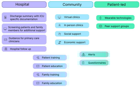GPs have reported that they have so few patients out of their large patient populations who are discharged from intensive care that they are unable to take on the education/allocate resources for targeted follow-up [38]. There is scope for digital health solutions such as virtual clinics to manage patients post ICU stay [39]. These could include wearable devices to aid in the early detection of complications. Systems could be implemented to identify high-risk discharges and implement tailored follow-up; however, care must be taken when using wearables and other technologies to not widen healthcare inequalities.