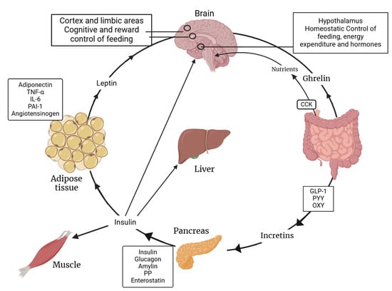 Insulin, a polypeptide hormone made up of 51 amino acids, is crucial for regulating glucose balance, promoting cell growth, and controlling metabolism. Previously, it was thought that this hormone was only produced by pancreatic β cells, but new research has revealed that some central nervous system neurons also produce it in trace amounts [49]. Food intake initiates the metabolism of glucose, leading to increased insulin production by β cells and a reduction in glucagon secretion by α cells to normalize serum glucose levels. Insulin is distributed to hepatocytes and circulates throughout the body after secretion, prompting them to store glucose as glycogen.