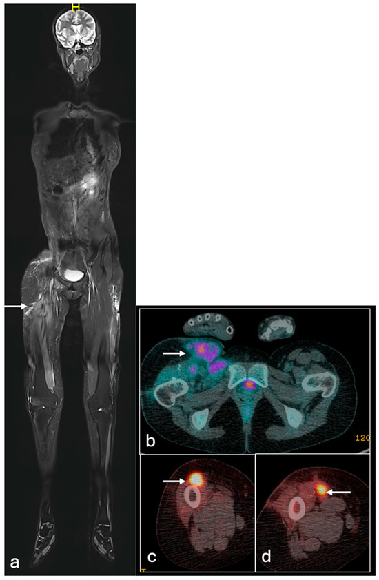 - Kessler, L.; Ferdinandus, J.; Hirmas, N.; Bauer, S.; Dirksen, U.; Zarrad, F.; Nader, M.; Chodyla, M.; Milosevic, A.; Umutlu, L.; et al. 68Ga-FAPI as a Diagnostic Tool in Sarcoma: Data from the 68Ga-FAPI PET Prospective Observational Trial. J. Nucl. Med. 2022, 63, 89–95. [Google Scholar] [CrossRef]