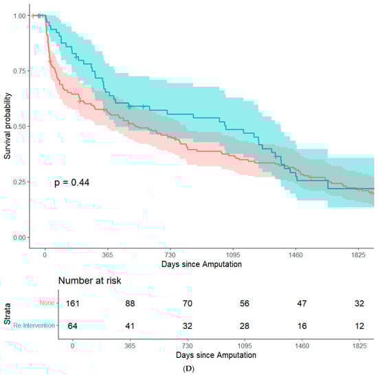 - Leinweber, M.E.; Greistorfer, E.; Rettig, J.; Taher, F.; Kliewer, M.; Assadian, A.; Hofmann, A.G. Quantification of the Survival Disadvantage Associated with Major Amputation in Patients with Peripheral Arterial Disease. J. Clin. Med. 2024, 14, 104. [Google Scholar] [CrossRef]