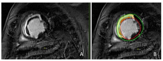 - Dall’Armellina, E.; Karia, N.; Lindsay, A.C.; Karamitsos, T.D.; Ferreira, V.; Robson, M.D.; Kellman, P.; Francis, J.M.; Forfar, C.; Prendergast, B.D. Dynamic changes of edema and late gadolinium enhancement after acute myocardial infarction and their relationship to functional recovery and salvage index. Circ. Cardiovasc. Imaging 2011, 4, 228–236. [Google Scholar] [CrossRef] [PubMed]
