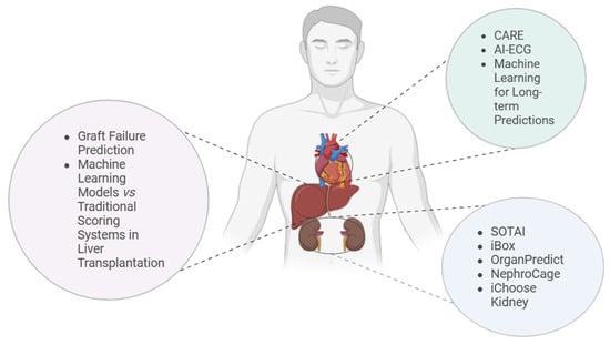 Artificial intelligence (AI) is increasingly being used in various fields of medicine, including organ transplantation, to improve treatment efficiency and optimize clinical decision-making. Figure 2 shows some of the AI-based tools used in kidney, heart, and liver transplantation.