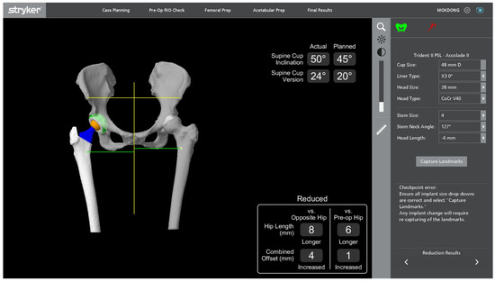 rTHA offers several advantages over conventional manual arthroplasty. rTHA enables the measurement of an impingement-free virtual ROM, reducing the risk of dislocation, and ensures precise correction of LLD. LLD following THA can lead to changes in hip biomechanics, dysfunctional gait, lower back pain, sciatica, instability, and early implant loosening [10]. The reported incidence of LLD after THA ranges from 1% to 30%, with discrepancies varying from 3 to 17 mm [11].