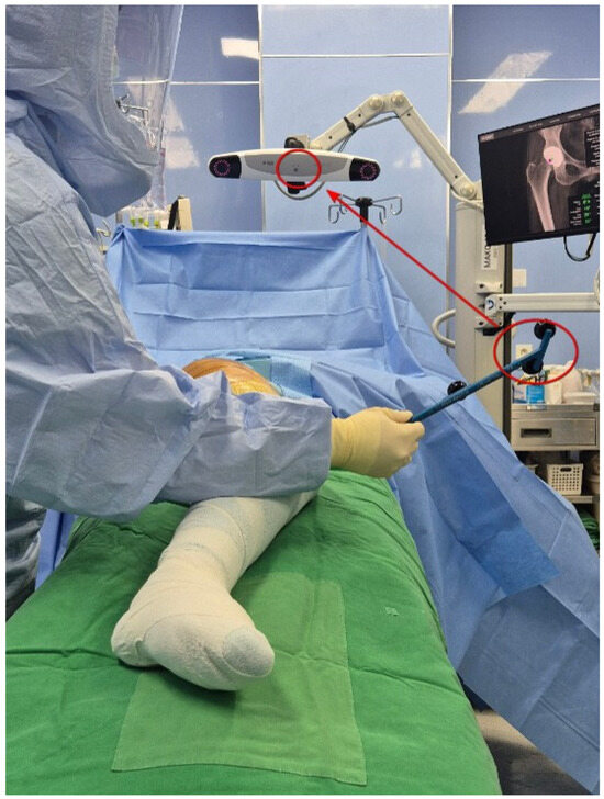 The exclusion criteria for patients were as follows: (1) active infection, (2) significant hip deformity on the contralateral side that could hinder leg length evaluation, (3) any neurological conditions (e.g., cognitive impairment and paralysis) or other diseases (e.g., heart failure and severe lung disease) that could limit postoperative exercise and daily active activity, (4) severe spinal deformities, and (5) history of alcoholism or drug abuse. To compare the usefulness of this new technique (Group I), two additional groups of 26 patients each were included: one group undergoing rTHA using the intrapatella landmark (Group II) and another undergoing conventional THA without robotic assistance (Group III).