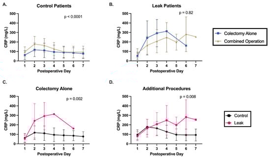 Niemann BR, Murthy J, Breinholt C, Swords J, Stevens A, Garland-Kledzik M, Mayers K, Groves E, Train K, Murken D. Postoperative C-Reactive Protein Trend Is a More Accurate Predictor of Anastomotic Leak than Absolute Values Alone. Journal of Clinical Medicine. 2025; 14(9):2931. https://doi.org/10.3390/jcm14092931
