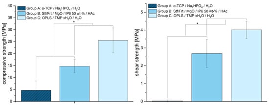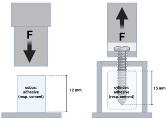 35]. However, high compressive strength may become important if the bone is augmented with the adhesive in addition to the bonding itself. In spite of this, the investigations on shear strength (see