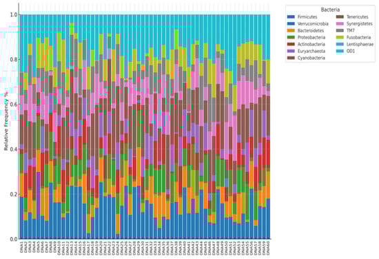 Taxonomic summaries were performed at the phylum (L2), class (L3), order (L4), family (L5), genus (L6), and species levels using QIIME 2, allowing for a comprehensive characterization of microbial diversity within the samples [39,40,41].