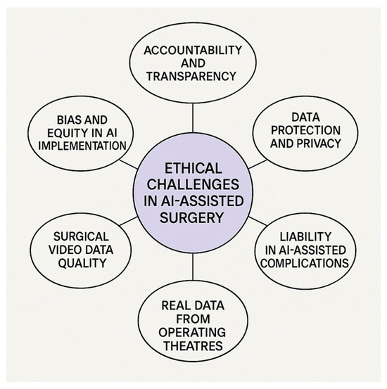 One of the primary ethical concerns surrounding AI in surgery is accountability. If an AI-driven system contributes to a medical error or adverse outcome, determining responsibility becomes complex [7,17]. Traditional medical malpractice frameworks rely on the concept of human agency, which AI challenges by introducing automated decision-making elements. The legal and ethical framework must establish clear accountability mechanisms that delineate human versus machine responsibility in clinical decision-making [18].