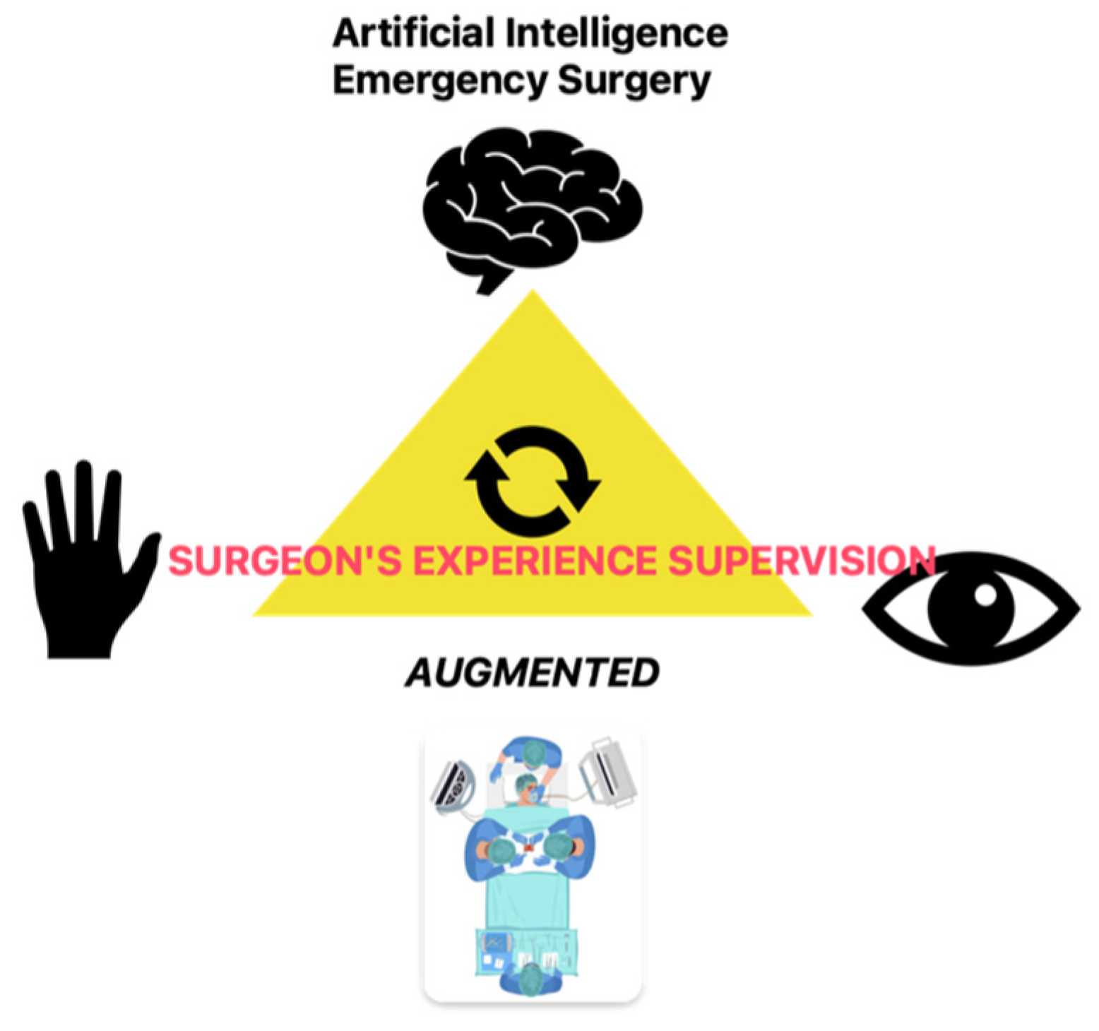Artificial intelligence emergency surgery: it is the result of the augmented eye, brain, and hand provided by AI tools, under the surgeon’s experience supervision.