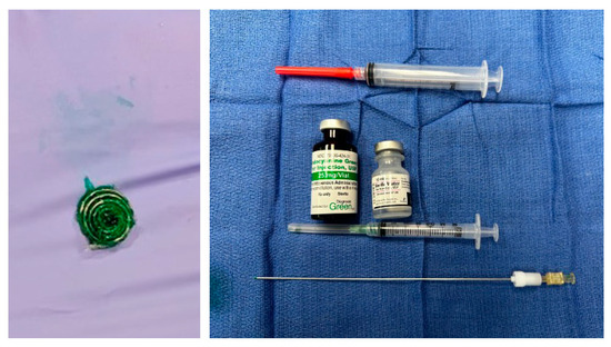 - Bawaadam, H.; Benn, B.S.; Colwell, E.M.; Oka, T.; Krishna, G. Lung Nodule Marking with ICG Dye-Soaked Coil Facilitates Localization and Delayed Surgical Resection. Ann. Thorac. Surg. Short. Rep. 2023, 1, 221–225. [Google Scholar] [CrossRef] [PubMed]