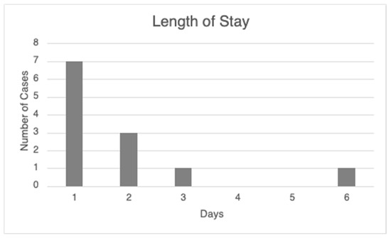 Hospital admission length of stay in days for each of the 12 included patient cases.