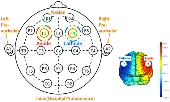 Figure 3. tDCS schematic diagram of electrode montage according to the 10–20 system.