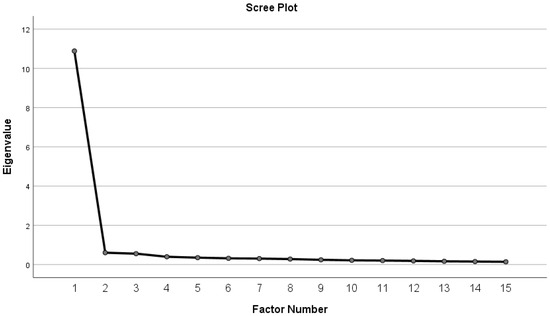 Finally, factor scores for each participant were saved as new variables. These scores represent the extent to which each participant exhibits the underlying latent factor identified by the analysis and can be used in further analyses or for validation purposes. As shown in Table 4, all 15 items exhibit factor loadings above 0.6, demonstrating strong contributions to the extracted factor and reinforcing the unidimensional structure of the questionnaire.